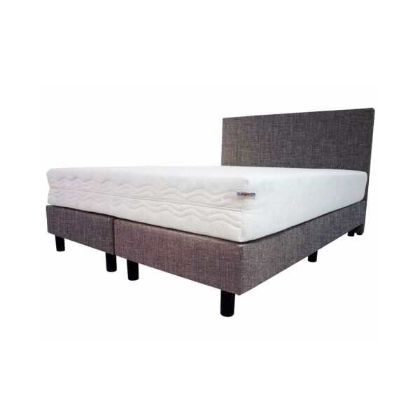 Uit de Bedworld Collection hebben we deze complete boxspring Struktura ontwikkeld. Deze boxspring bestaat uit 2 massieve harde boxen en is inclusief een luxe gestoffeerde hoofdbord en 1 grote pocketveren koudschuim matras (Medium ligcomfort)