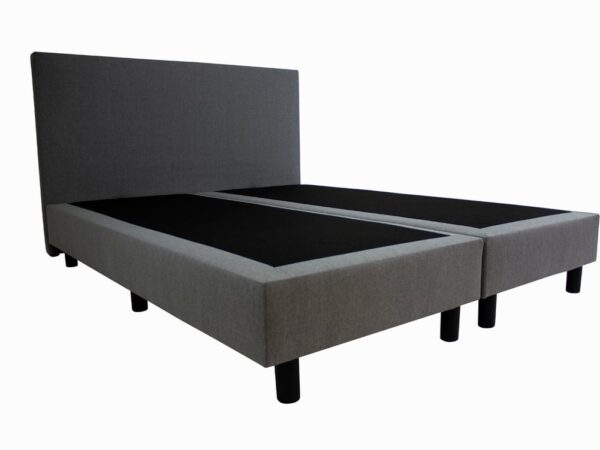 Deze Boxspring ombouw wordt compleet geleverd. Deze Boxspring bestaat uit 2 massiefe harde houten boxen en een hoofdbord in de stofkleur grijs. Handig voor mensen die opzoek zijn naar een goed logeerbed of gewoon een ruimte besparende boxspring zoeken. De montage van deze boxspring is erg makkelijk zelf te doen. Stap 1 is pootjes erin draaien, stap 2 is het hoofdbord aan de boxspring schuiven en stap 3 is lekker slapen. Vergeet niet een matras erop te leggen!