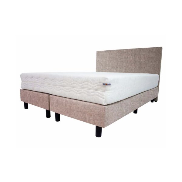 Uit de Bedworld Collection hebben we deze complete boxspring Struktura ontwikkeld. Deze boxspring bestaat uit 2 massieve harde boxen en is inclusief een luxe gestoffeerde hoofdbord en 1 grote pocketveren koudschuim matras (Medium ligcomfort)