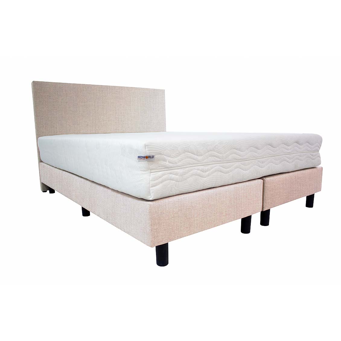 Uit de Bedworld Collection hebben we deze complete boxspring Struktura ontwikkeld. Deze boxspring bestaat uit 2 massieve harde boxen en is inclusief een luxe gestoffeerde hoofdbord en 1 grote pocketveren koudschuim matras (Medium ligcomfort)