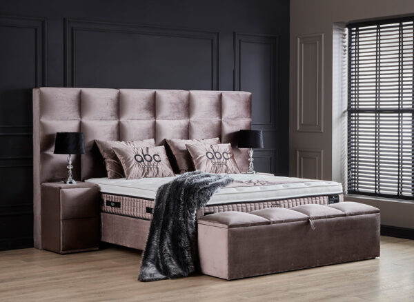 Het gestoffeerde opbergbed Cullinan bestaat uit een prachtige luxe blokken.