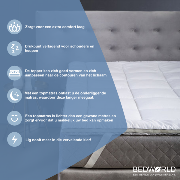 ✓ Een topmatras is lichter dan een gewone matras en zorgt ervoor dat u makkelijk uw bed kan opmaken